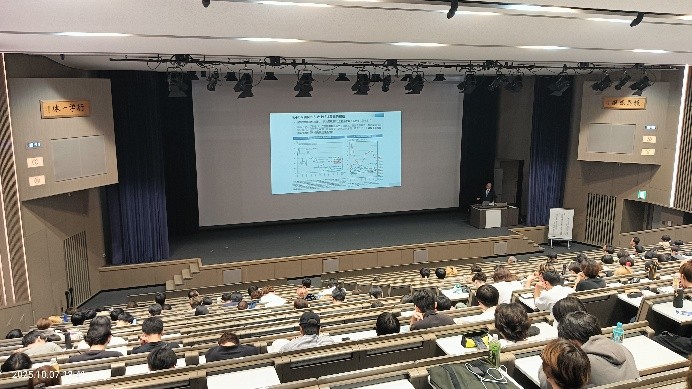 令和7年10月7日(火)、名城公園キャンパスにて「2025年度経済学会講演会」が開催されました。本講演会は、学外の専門家による講演を通じて、学生の知的関心を刺激し、主体的な学びを促進することを目的として毎年実施されています。 今年度は「中部地域の産業の展望と課題」と題し、経済産業省中部経済産業局長 寺村英信 氏を講師にお迎えしました。講演では、地域産業の現状や課題、グローバル化の進展、人手不足への対応など、実務に基づいた貴重なお話をいただきました。 参加した学生からは、「中部経済産業局の取り組みを通じて地域の課題を深く理解できた」「地域に閉じず、広い視野を持つことの重要性を実感した」といった感想が寄せられ、講演を通じて新たな学びの扉が開かれた様子が伺えました。 ご多忙の中、講演をいただいた寺村局長に心より感謝申し上げます。今回の講演が、学生一人ひとりの学修意欲をさらに高める契機となることを期待しています。